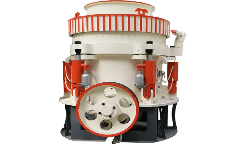 在工作时通过电动机的旋转带动带轮或联轴器、 传动轴和圆锥部在轴心线下使偏心轴做周期性旋摆运动。在物料从料口进入破碎腔后因受到偏心轴和轧臼壁的相互冲击挤压、研磨、揉搓从而产生破碎的作用。